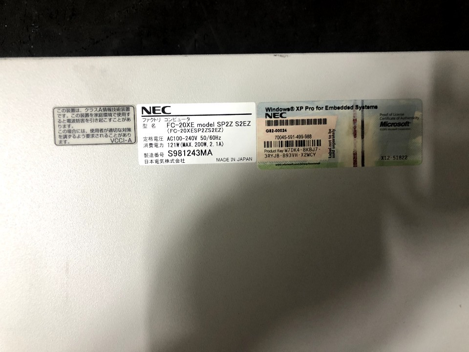위 제품은 NEC 브랜드의 산업용PC, 모델 - FC-20XE (SP2Z S2EZ)입니다.