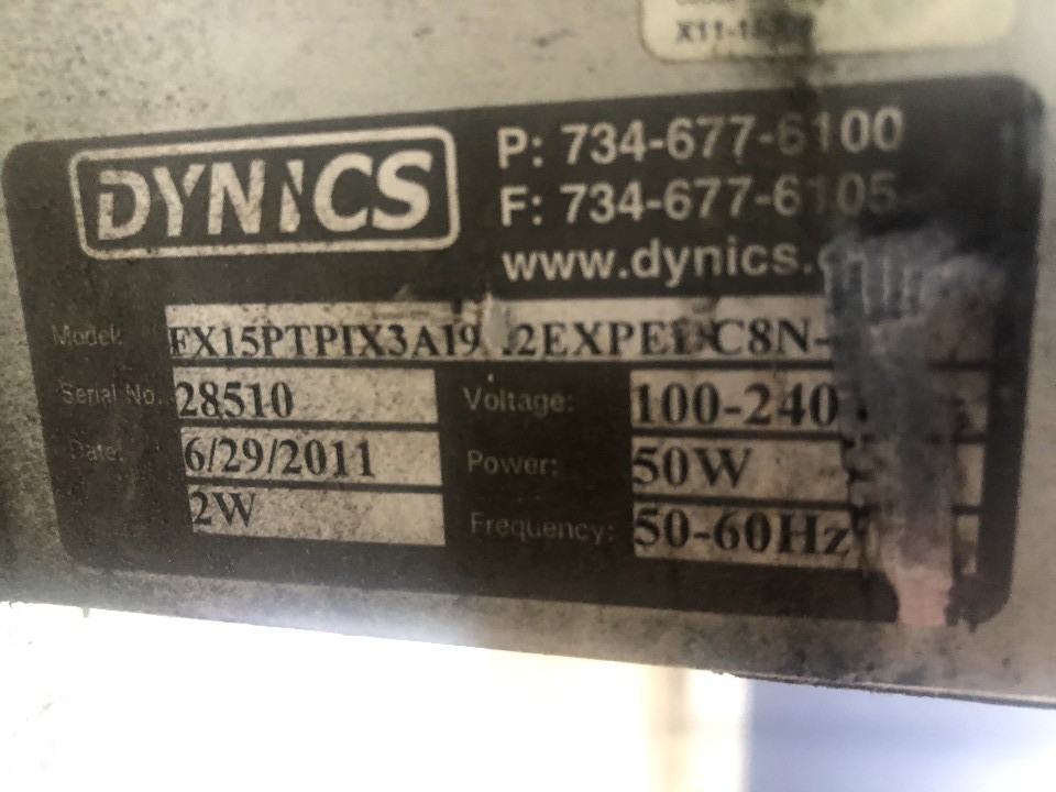 위 제품은 DYNICS 브랜드의 산업용 패널PC, 모델 - FX15PTPIX3A19입니다.