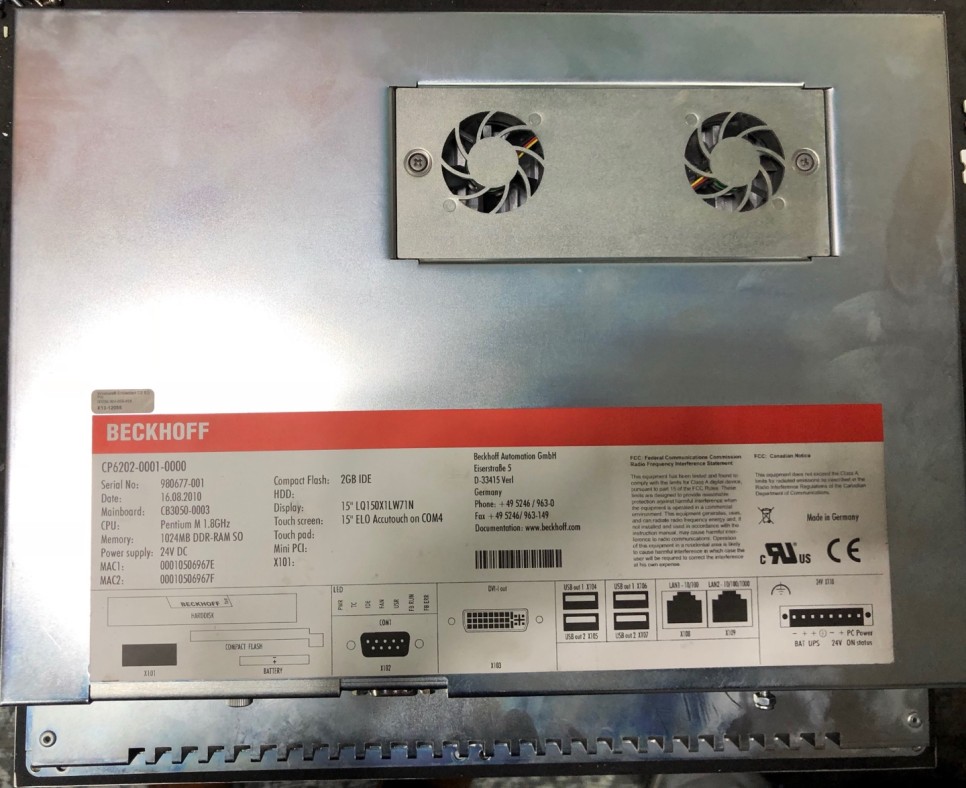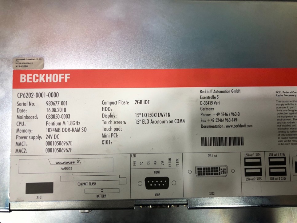 위 제품은 BECKHOFF 브랜드의 산업용PC, 모델 - CP6202-0001-0000입니다.