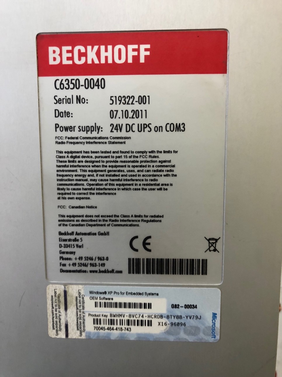 위 제품은 BECKHOFF 브랜드의 산업용PC, 모델 - C6350-0040입니다.