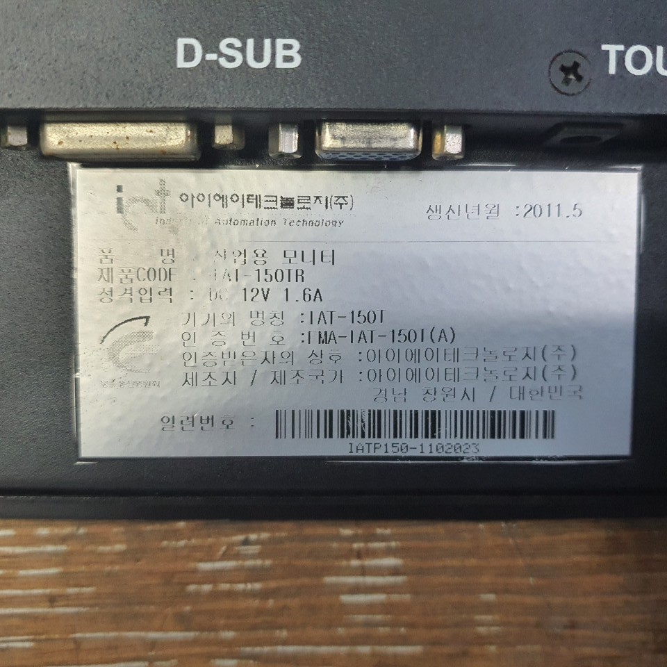 위 제품은 IA Technology 브랜드의 산업용 모니터, 모델 IAT - 150T 입니다.